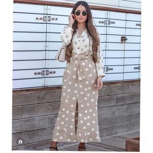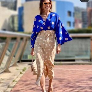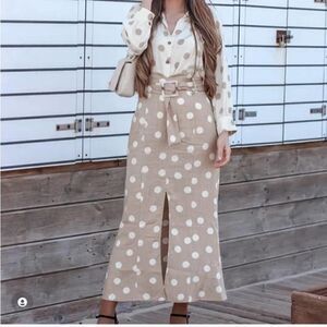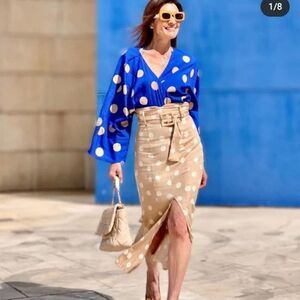 Zara Polka Dot Skirt with Belt Small New Beige Linen Blend Measurements