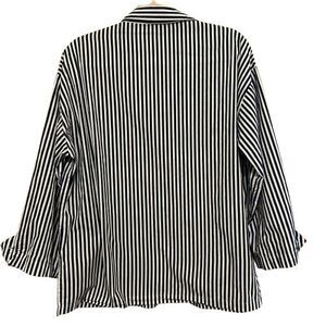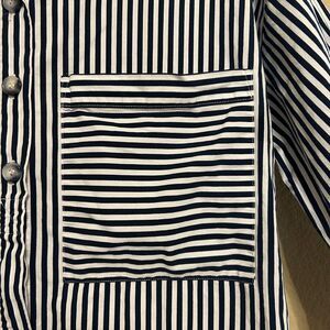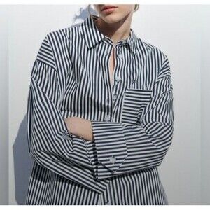 Zara Poplin Cotton Shirt Womens Medium Oversized Button Up Navy White Striped