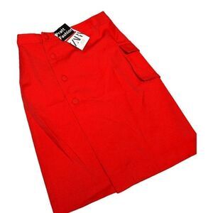 Zara Pratt Fashion Womens XS Pencil Skirt Button Down Academia Cargo Pocket Spring Pop of Color Statement Bright Business Casual Date Brunch Fun