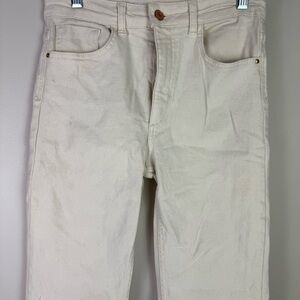Zara Premium Crafted Denim Goods Raw Hem Straight Leg Jeans Cream Size 6 Cotton