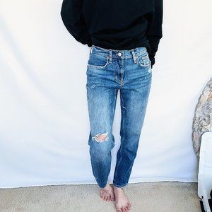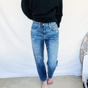Zara Premium Denim Collection Mid Rise Blue Lightly Distressed Straight Leg Jean