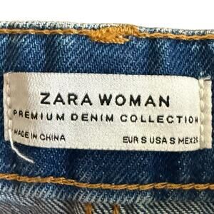 Zara Premium Denim Culotte Jeans With Embroidery Blue Gold Red Small High Waist