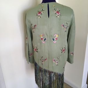 Zara Print Embroidered Fringe Shirt Brand New