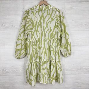 ZARA Printed Babydoll Dress S Green Balloon Sleeves Tiered Mini V Neck Tie Fall
