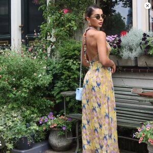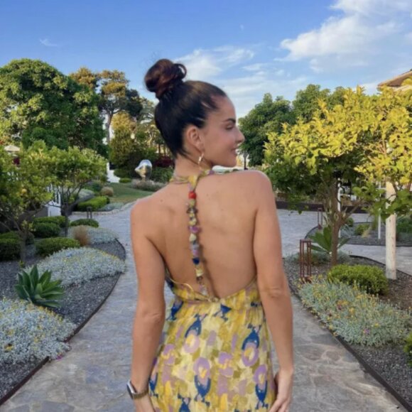 Zara - Printed Beaded Backless Halter Dress