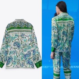Zara Printed Button-Down Shirt | Size XL | Designer-Inspired Green Pattern