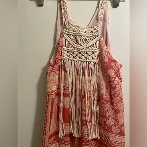 Zara Printed Crochet Fringe Boho Maxi Dress Size Extra Small