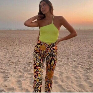 Zara Printed Flared Pants Trousers Groovy Floral 70's Pattern Sz S