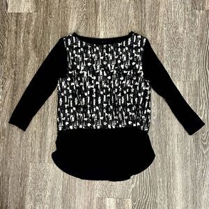 Zara Printed Overlay Top | Women’s Size Medium | Black & White Abstract Design