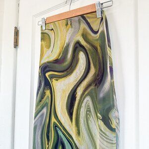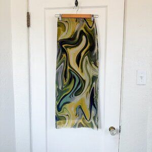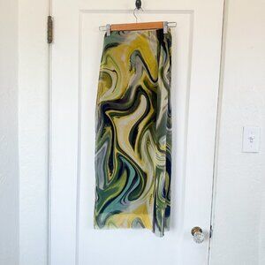 Zara | Printed Tulle Midi Skirt in Tie-Dye Green (Style 5039/808/131)