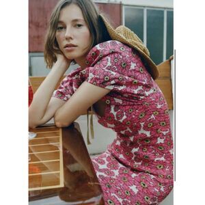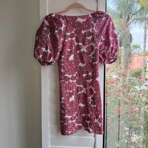 Zara Puff Off the Shoulder Sleeve Smocked Mini Dress in Pink Daisy size Medium