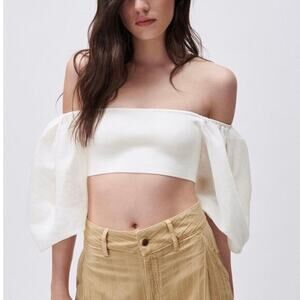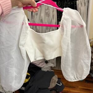 Zara Puff Organza Knit Top White Size Medium Bloggers Favorite Feminine