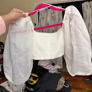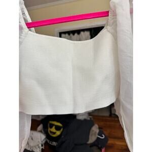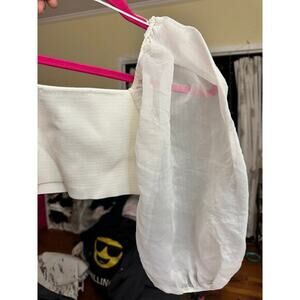 Zara Puff Organza Knit Top White Size Medium Bloggers‎ Favorite Feminine