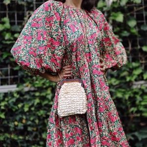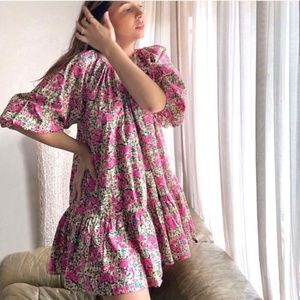 ๐๐ Cute Puff Shoulder Cotton Print Dress