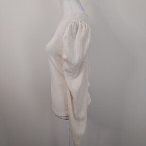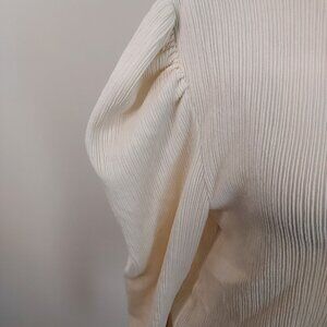 Zara Puff Shoulder Long Sleeve Ribbed Textured Cream Top Size Small