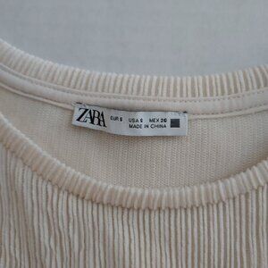 Size small Zara Puff Shoulder Long Sleeve Ribbed Textured Cream Top. 69% polyester 28% viscose 3% elastane. Pit to pit 16.5" Length 21.5" Excellent pre-owned condition.