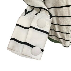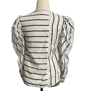 Zara Puff Sleeve Striped Blouse XS Black White Asymmetric Back Modern Chic