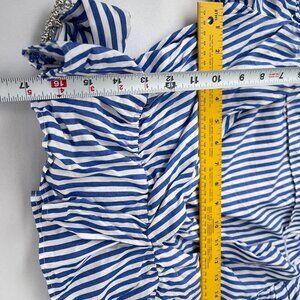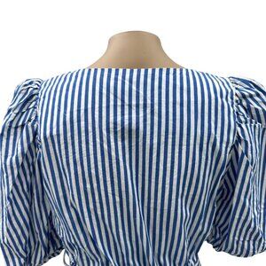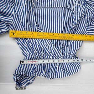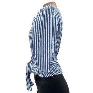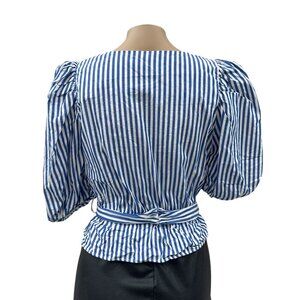 Zara Puff Sleeve Striped Wrap Blouse Rhinestone Belted Waist Blue White Women S