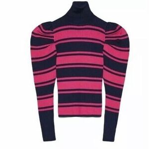 Zara Puff Sleeve Turtle Neck Pink Striped