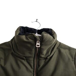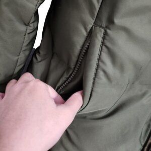 Zara Puffer Coat Jacket Small Army Green Winter Lined Pockets Zip