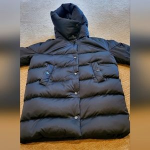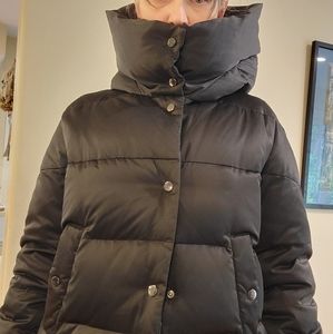 Excellent condition, European style Puffer, Hoodie down oversized winter women's black jacket. Two front pockets. Lightweight, warm fashion jacket/ coat.