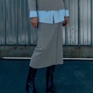 Zara Pull On High Waisted Knit Pencil & Straight Midi Skirt Gray Women's Size M
