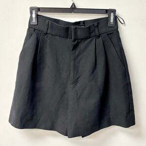 Zara Pull On High Waisted Pleated Front Trouser Short Black Women's Size XS