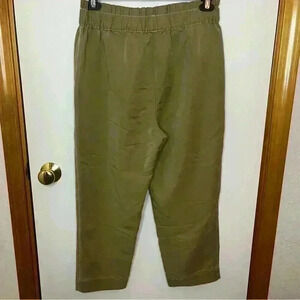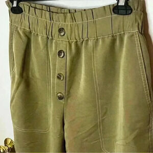Zara Pull On Pants Women Large Khaki Elastic Wideband High-rise Button Detail