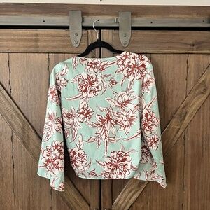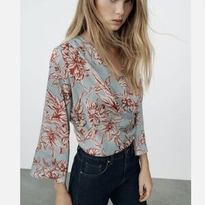 Zara Pullover Floral Faux Wrap Long Sleeve Top Size Medium