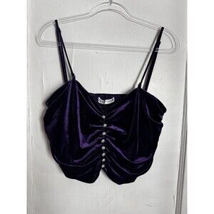 Zara Purple Crop Velvet Bling Button Top XL GOTH Punk Sexy Stretch Victorian