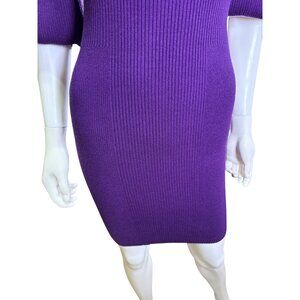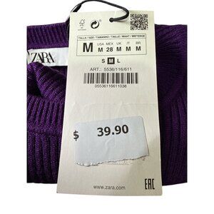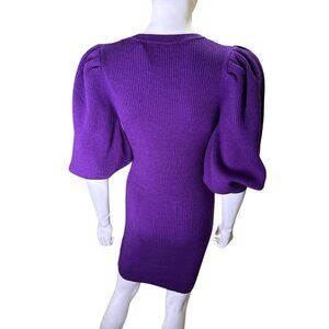 Zara Purple Ribbed Knit Puff Sleeve Mini Sweater Dress Medium Viscose Blend NWT