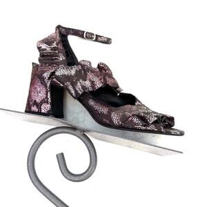 Zara Purple Snakeskin Ruffled Metallic Heels Size EU 37/ US 6.5