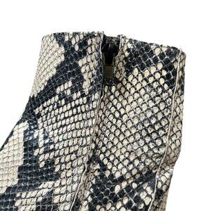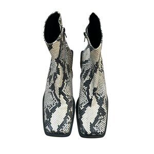 Zara Python Snakeskin Embossed Leather Block Heel Ankle Boots Size 37 US 6.5