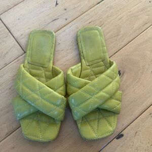 Trendy quilted sandals in vibrant lime. Ideal for casual wear.