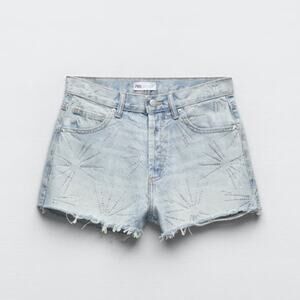 Zara RHINESTONE MID-RISE TRF DENIM SHORTS