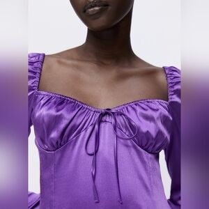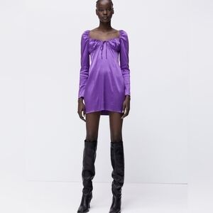 Zara RUCHED purple SATIN EFFECT DRESS Size Small