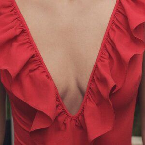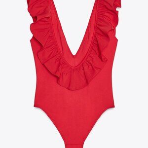 Zara RUFFLED SWIMSUIT Red- NWT