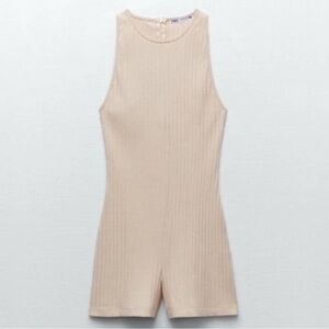 Zara Racerback Ribbed Knit Oatmeal Cream Tan Sleeveless Romper Cat Suit. Size medium. Excellent condition. Stretchy. Partial zip back.