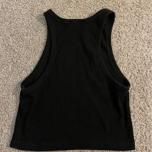 Black Ribbed Cropped Racerback Tank