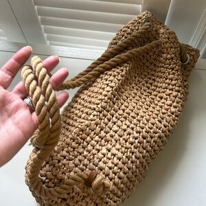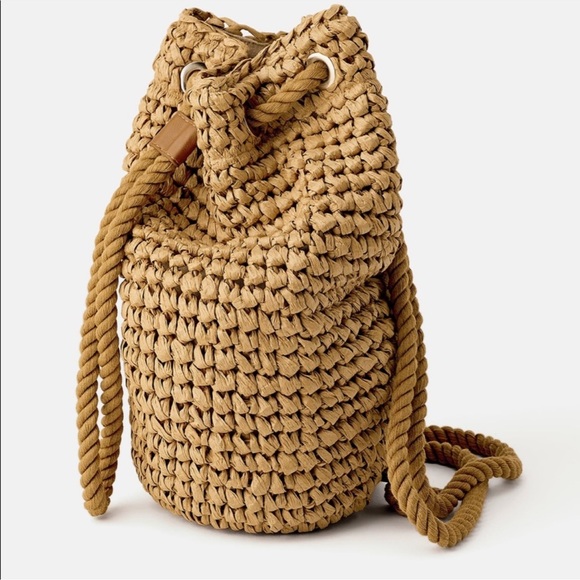 Zara Raffia Duffle Rope Backpack Bag Natural