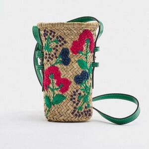 Zara Raffia Floral Mini Crossbody Bag NWT