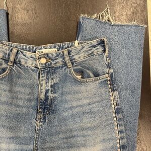 Zara Raw Hem Straight ankle length Leg Jeans Blue Size 2 Silver Studded Sides