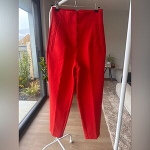 Bold red ankle pants. Sleek and stylish design. Perfect for versatile wear. Work outfit