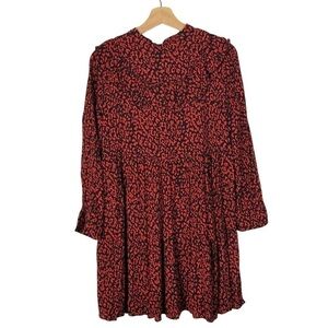 Zara Red & Black Animal Print Ruffle Long Sleeve Mini Dress M