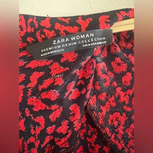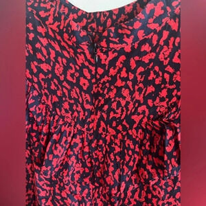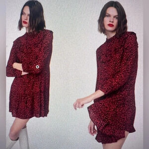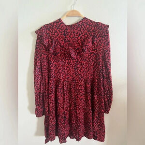 Zara Red & Black Leopard Print Mock Neck Ruffle Long Sleeve Mini Dress M Vday