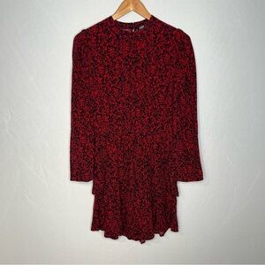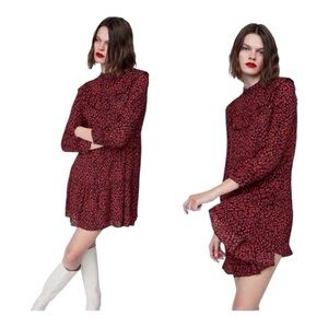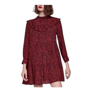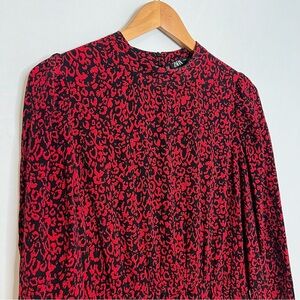 Zara Red & Black Leopard Print Ruffled Long Sleeve Dress. Size Medium.