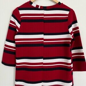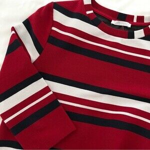 Zara Red Black and White Striped 3/4 Sleeve Shift Dress, Size S