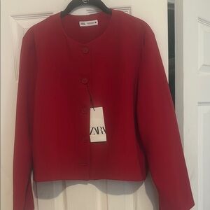 Zara Red Blazer Minimalist Collarless Design size XL new with tags