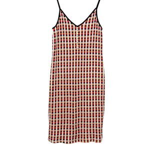 Zara Red Blue White Knit Window Pane Pattern Midi Slip Sleeveless Dress S Retro