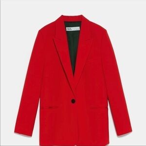 long Sleeve Blazer with Lapel Collar, one button closure, back Vent, double welt pockets in front.